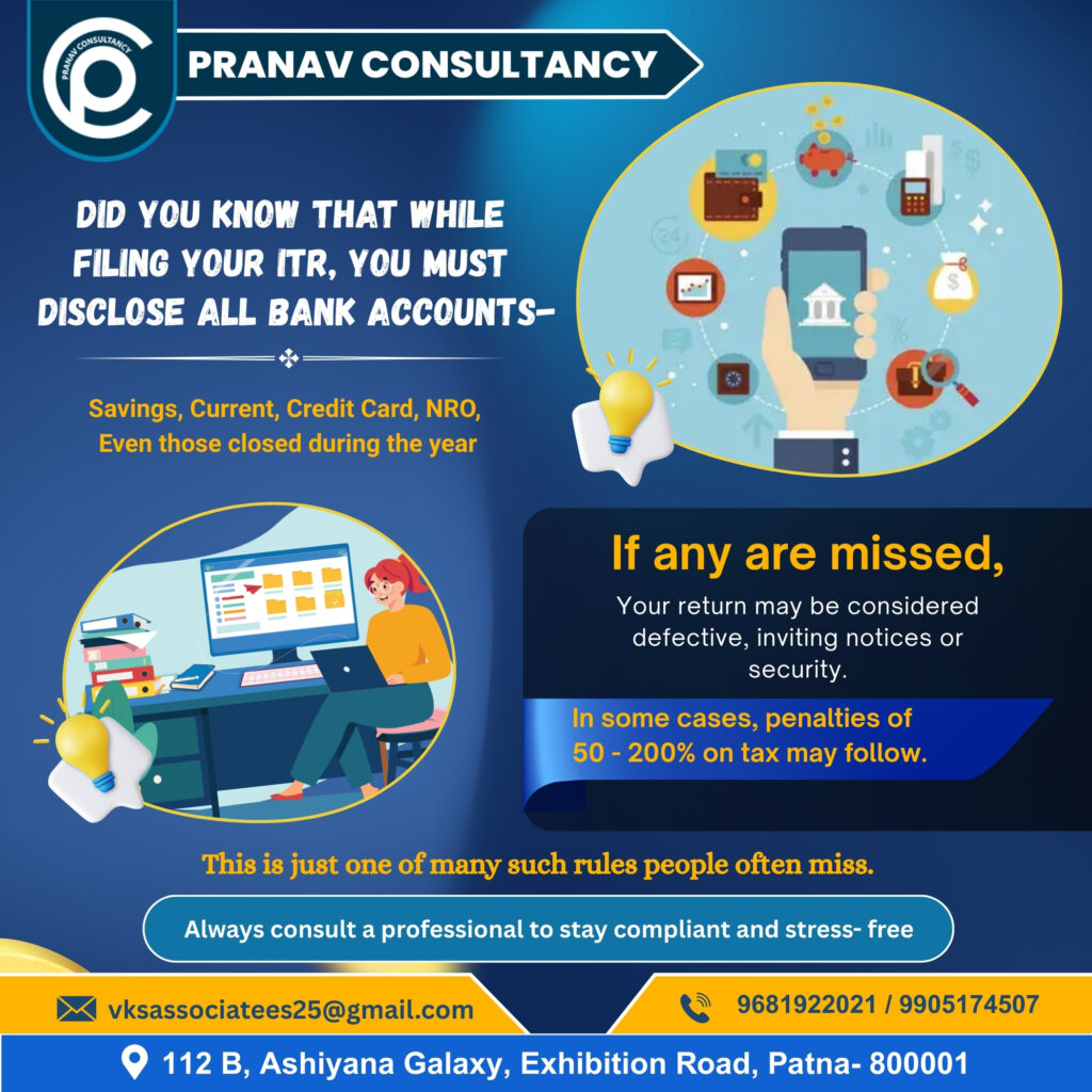 📢 Do You Know? While filing your ITR, you MUST disclose all bank accounts — including savings, current, credit card,...