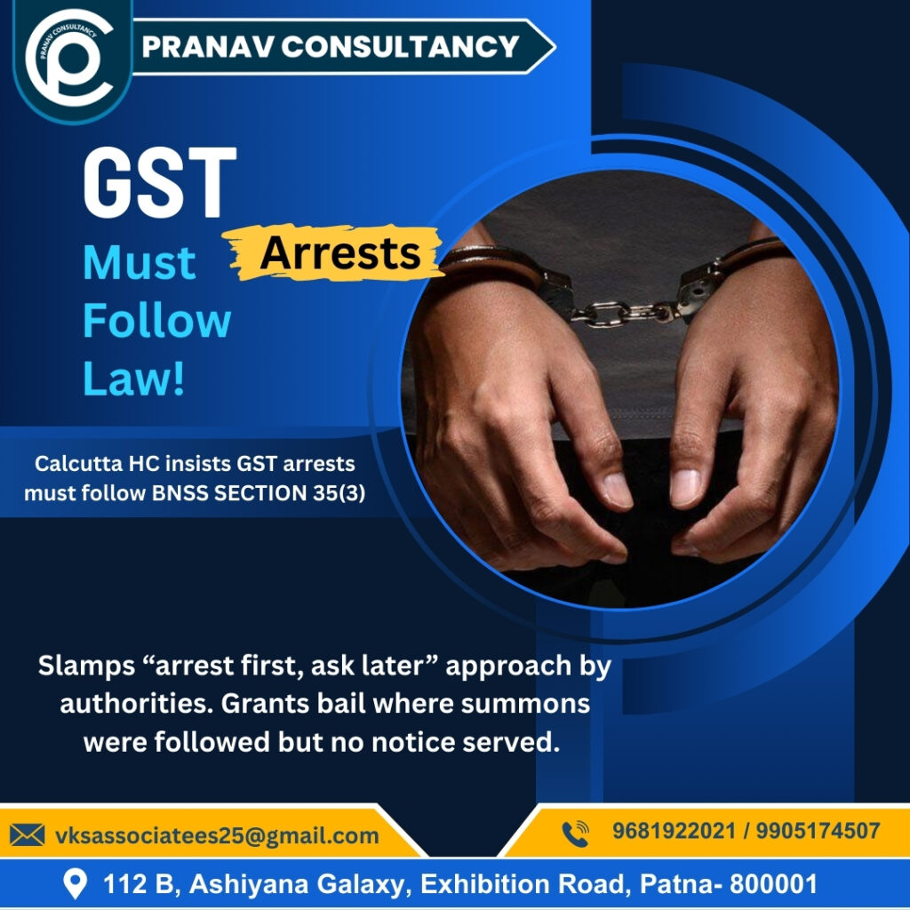 The Calcutta High Court has made it clear β GST arrests must comply with BNSS Section 35(3). No more βarrest...